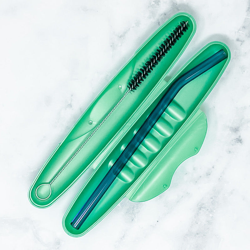 Take your glass straw anywhere with confidence. Our hard-sided To Go Case safely carries any 6–8″ Strawesome straw (including barely bent styles). Please note: straws over 8″ will not fit, and 6″ straws may shift slightly inside. In most cases, one straw fits per case—though a few 6″ cocktail straws can fit together if cushioned with a cloth.